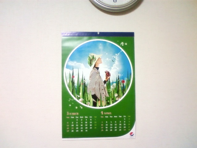 今年使用しているカレンダーは、貰い物のペプシコーラのものなのですが、