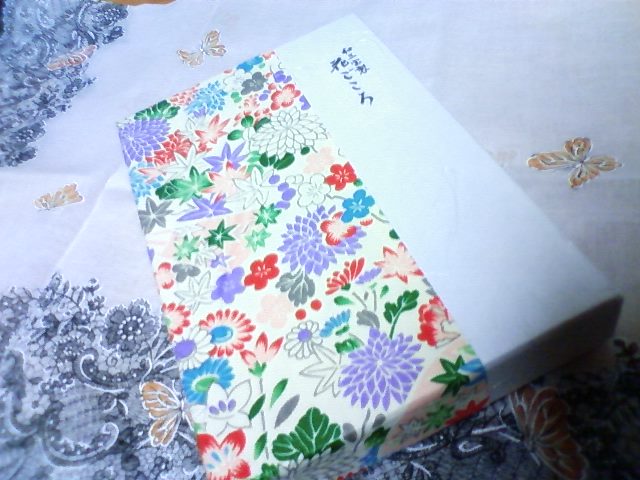 青い押し花のシールと、もう無くなってしまったけれど、水色のチャイナ組紐のストラップをセットに使っていました。
